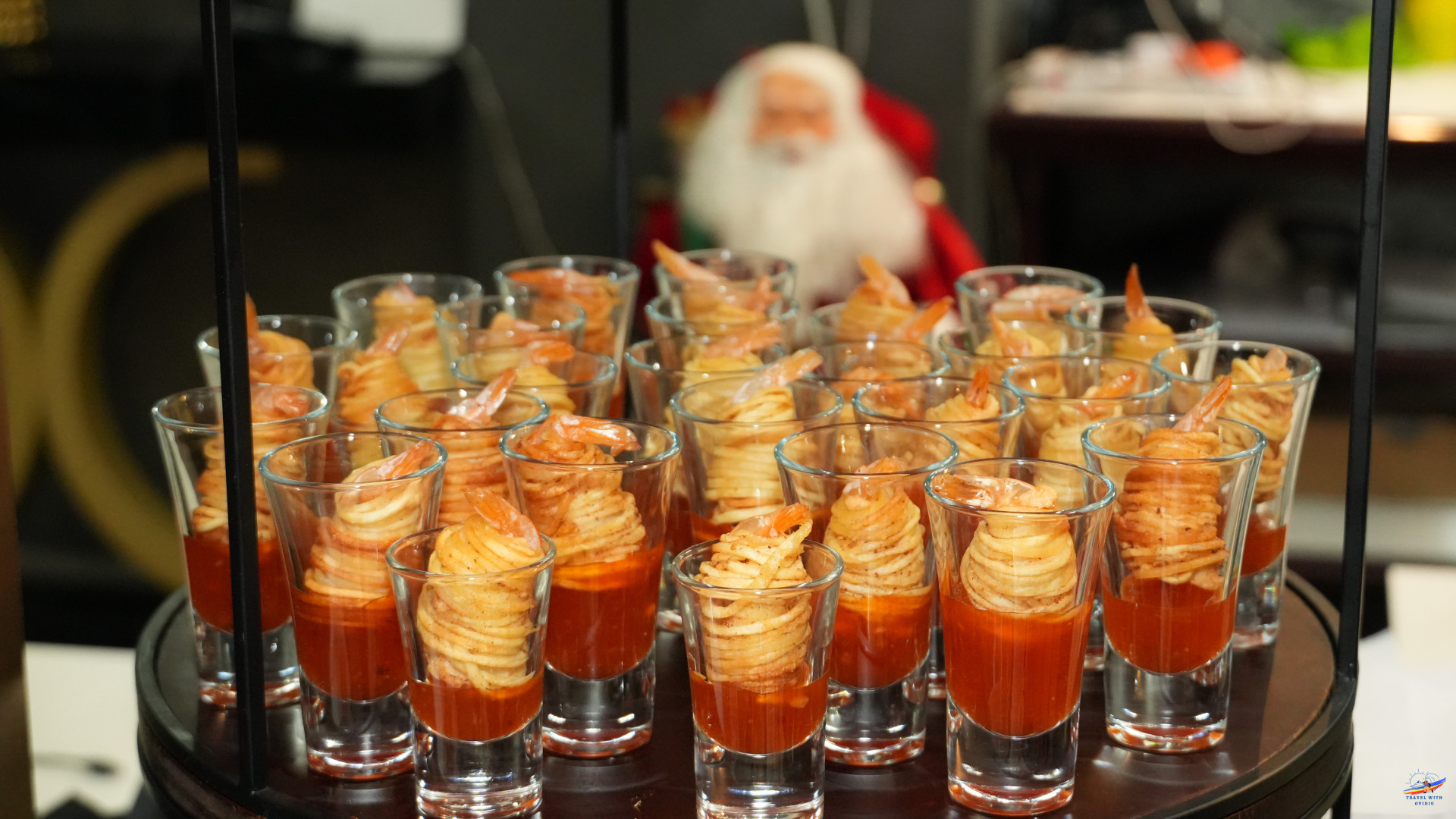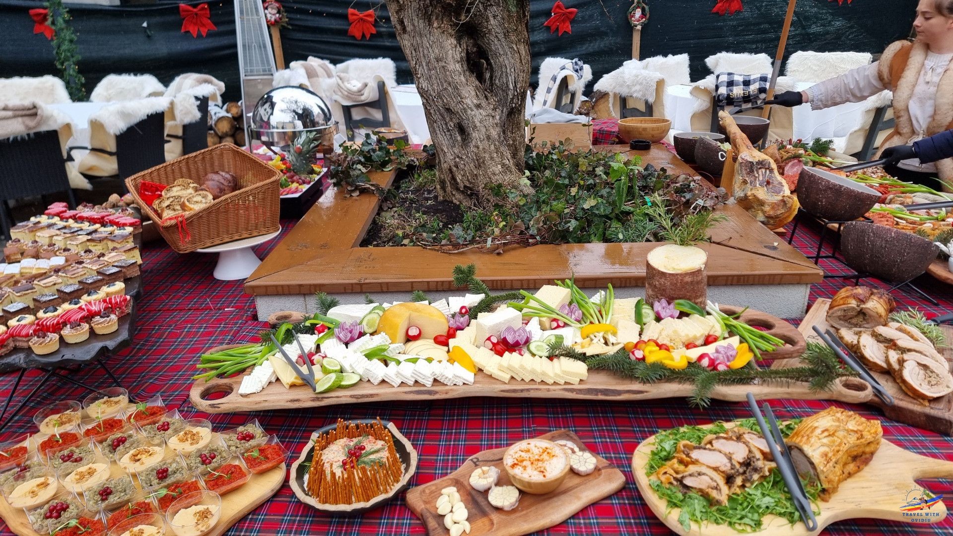 Pomana porcului a fost, fără îndoială, unul dintre cele mai așteptate momente. Grădina hotelului Elexus Boutique s-a dovedit neîncăpătoare pentru numărul mare de oaspeți veniți să se bucure de un adevărat festin tradițional. Carne la garniță gătită la ceaun, tochitură, purcel la foc potrivit, pui la rotisor, alături de o mulțime de gustări specifice Crăciunului, aranjate într-un mare fel, care pe mine cel puțin m-au impresionat. (vedeți pozele). Mesele au fost completate de brânzeturi fine, pește, salate, fructe și o varietate impresionantă de dulciuri, prăjituri și torturi. Cel mai apreciat a fost însă cozonacul de casă, pufos și aromat, pregătit după o rețetă proprie.