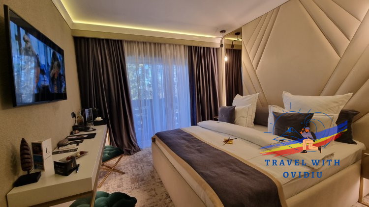 Ceea ce m-a cucerit din prima secundă a fost grija pentru micile bucurii. Am descoperit o mochetă extrem de moale sub picioare, saltele care parca te îmbrățișează și o selecție variată de perne, pentru un somn odihnitor. Pe pat, ne-au așteptat câteva bomboane Raffaello din partea casei și o felicitare personalizată de bun venit, un gest cald care spune multe despre valorile hotelului. Mai mult, minibarul generos și sticla de vin pregătită pentru serile noastre romantice au completat perfect tabloul unui sejur în care nu ne-a lipsit nimic.