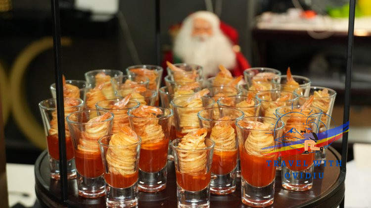 Ziua de Crăciun a fost dedicată bucuriei celor mici. Au fost o mulțime de copii care l-au așteptat cu sufletul la gură. Moș Crăciun și-a făcut apariția lângă bradul hotelului din lobby, cu daruri, iar copiii l-au întâmpinat cu poezii, colinde și chiar bancuri. Unele atât de savuroase, încât Moșul a uitat de protocolul său oficial și a izbucnit în râs, stârnind aplauze și hohote de veselie. Adulții s-au bucurat în restaurant de muzica live a celor de la Alb si Negru cu Kamara și de interpretul Valentin Dinu, au dansat și au filmat fiecare hit. Mâncarea din belsug, preparate tradiționale cu un design specific. Vinurile de calitate superioară, alături de bucatele alese au dat savoare mesei de Crăciun, iar noi ne-am putut bucura de fiecare clipă.