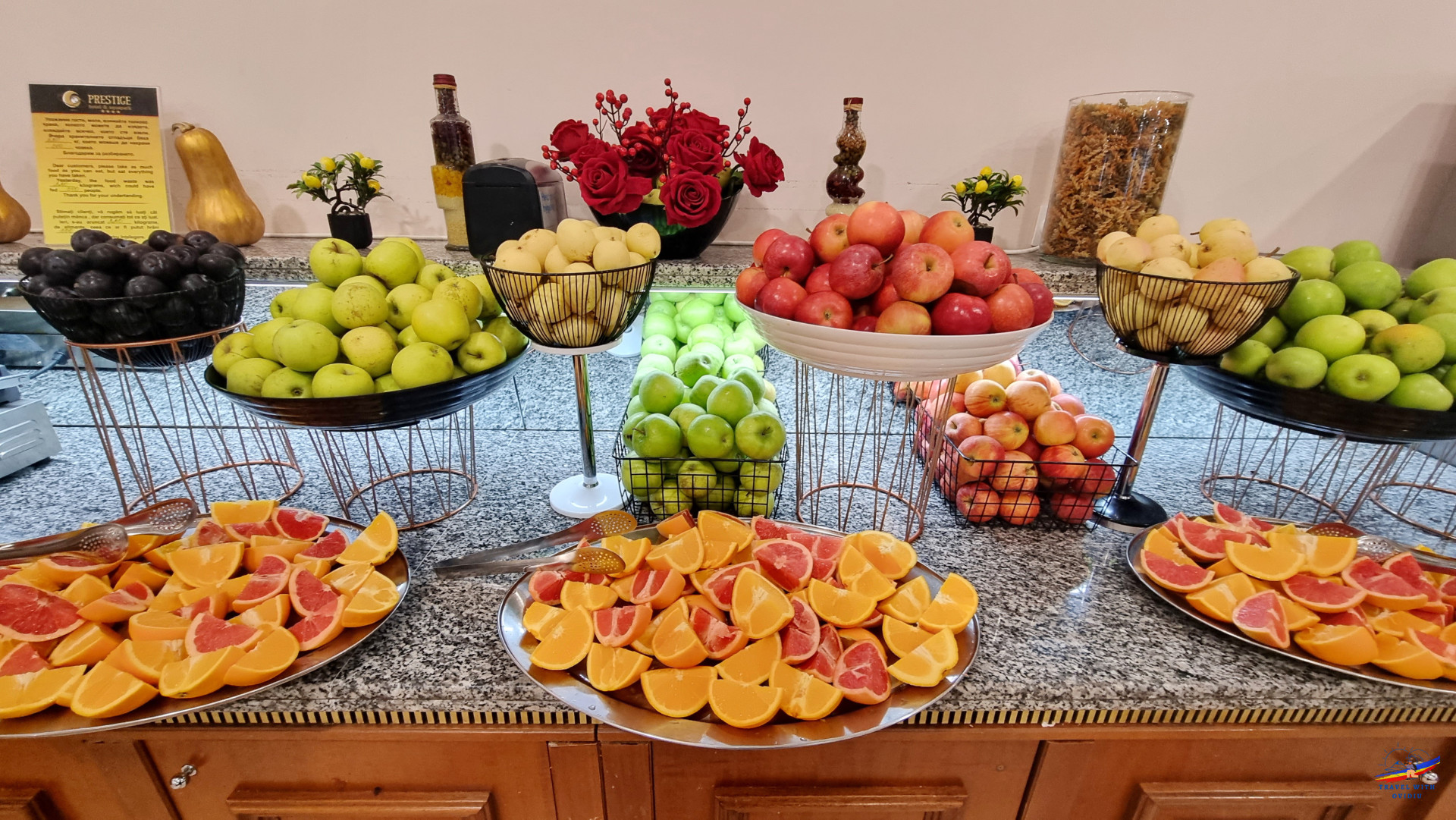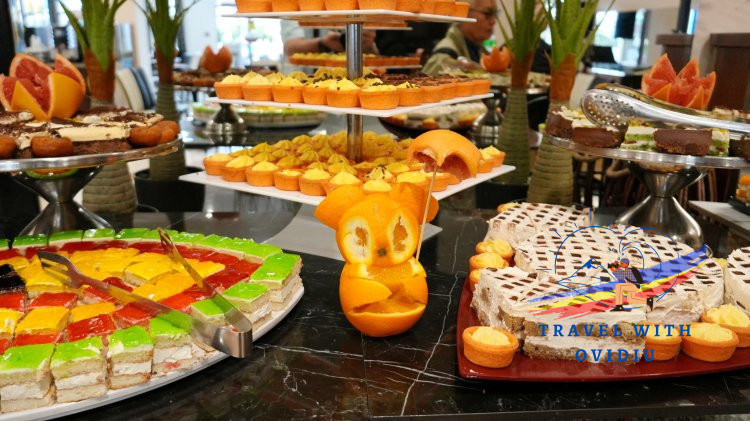 La fiecare masă există "colțul prăjiturilor" care arătau superb, dar pe care nu le-am încercat pentru că nu mănânc decât rareori și în anumite ocazii. Am preferat să mă delectez cu mere. prune, grepfruit sau portocale.