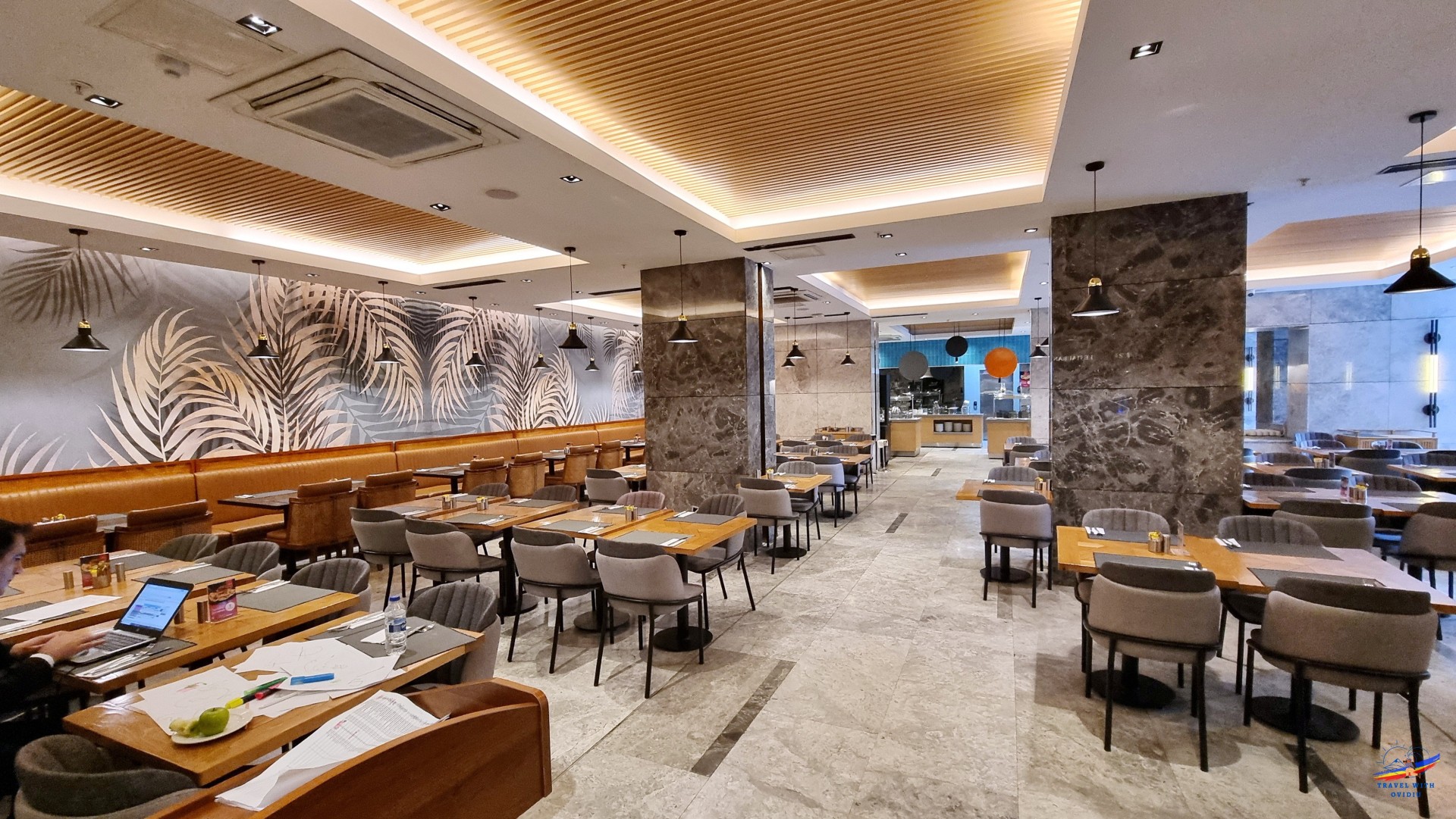 Să trecem la partea cea mai gustoasă a dimineții: restaurantul. Hotelul dispune de două astfel de spații, noi servind micul dejun în cel principal (celălalt fiind, cel mai probabil, dedicat meselor a la carte). Programul este generos, de la 07:00 la 10:30, timp suficient pentru a te bucura de ceea ce eu aș numi un mic dejun îmbelșugat..