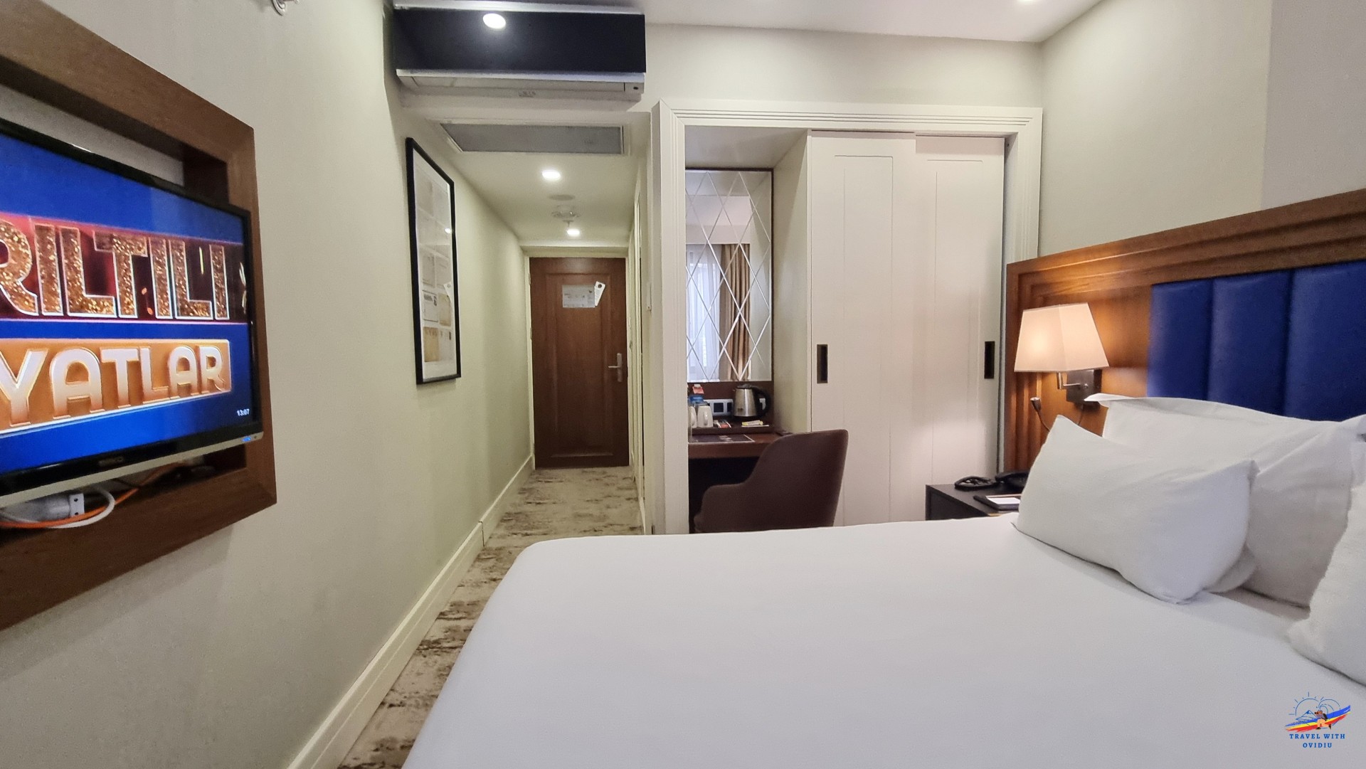 Planul inițial era să ne cazăm la Marmaray Hotel, o unitate de 4 stele din zona centrală, însă, printr-o răsturnare de situație ale cărei detalii îmi scapă, am avut parte de un upgrade neașteptat, dar plăcut.. Ne-am trezit repartizați la un hotel de 5 stele, parte dintr-un lanț internațional care nu mai are nevoie de nicio prezentare: Ramada Plaza Sultanahmet by Wyndham. Recunosc, m-a încântat ideea, chiar dacă sunt conștient că standardul stelelor în Turcia diferă uneori de cel de la noi din țară. Nu m-am întrebat cât a reprezentat cazarea din costul total al excursiei și nici nu am simțit nevoia să verific tarifele; eram mult prea decis să las cifrele deoparte și să mă bucur din plin de fiecare moment și de fiecare experiență pe care organizatorii ne-au pregătit-o.